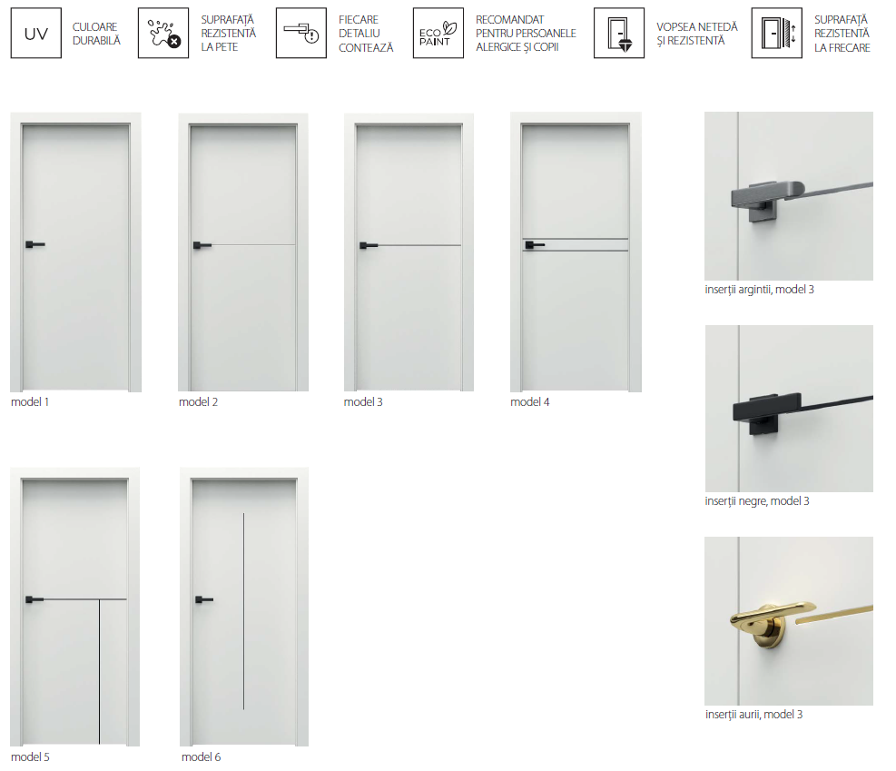 Tocuri recomandate pentru uși cu falț reversibil: - PORTA SYSTEM cu falţ reversibil pe Vopsea UV Premium Plus